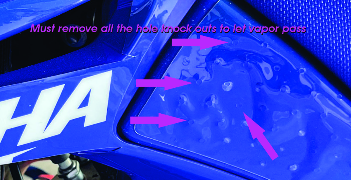 tank.  Air bubbles will occur after use push air out of the holes to lay flat. Lastly do not store your bike with gas in the tank and unscrew the tank cap.